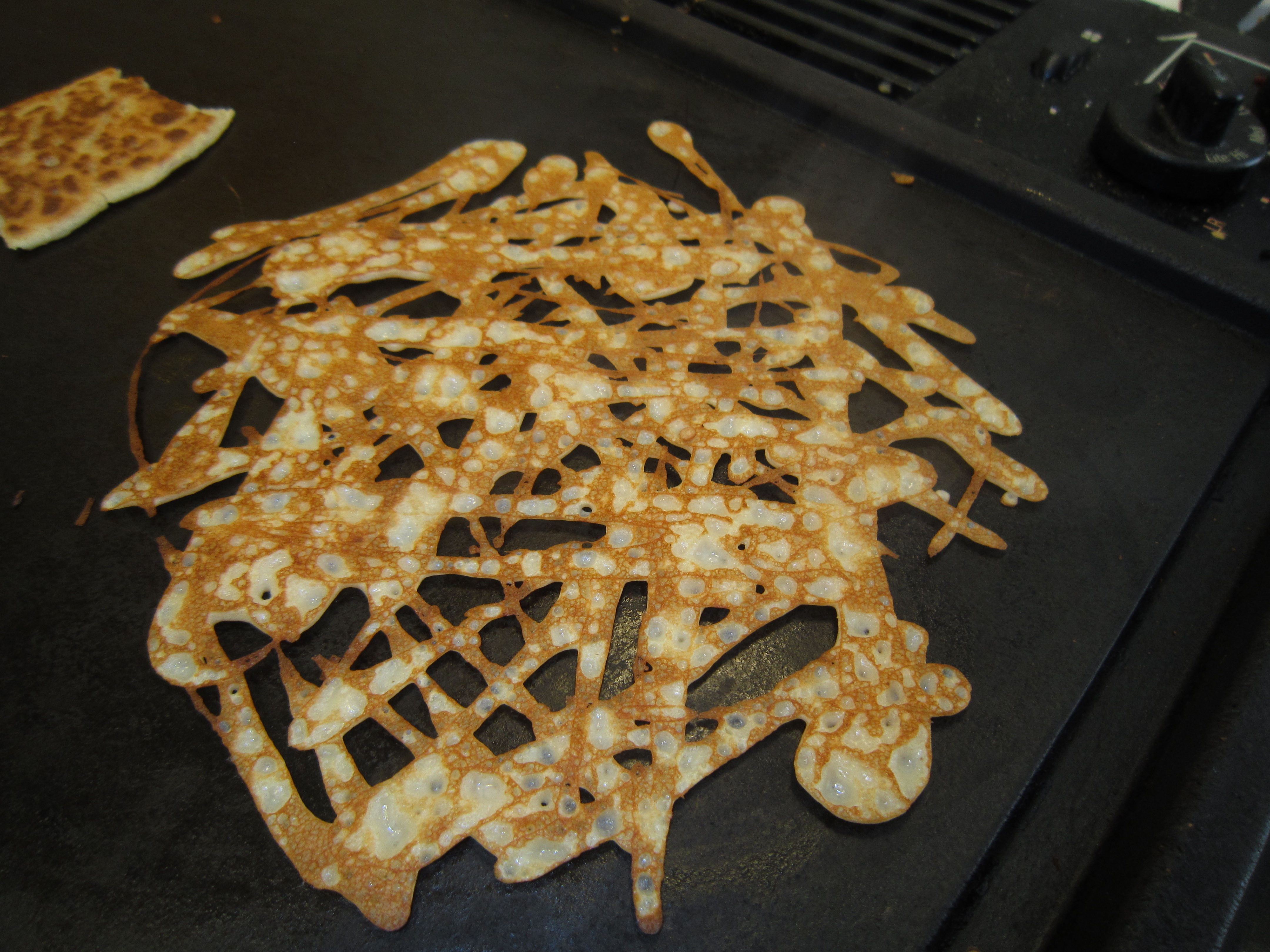 With just a little practice I got something much closer to LACY! So I had a lacy pancake, now could I get something that might make you interested? Remember I said I had leftover chicken curry.
