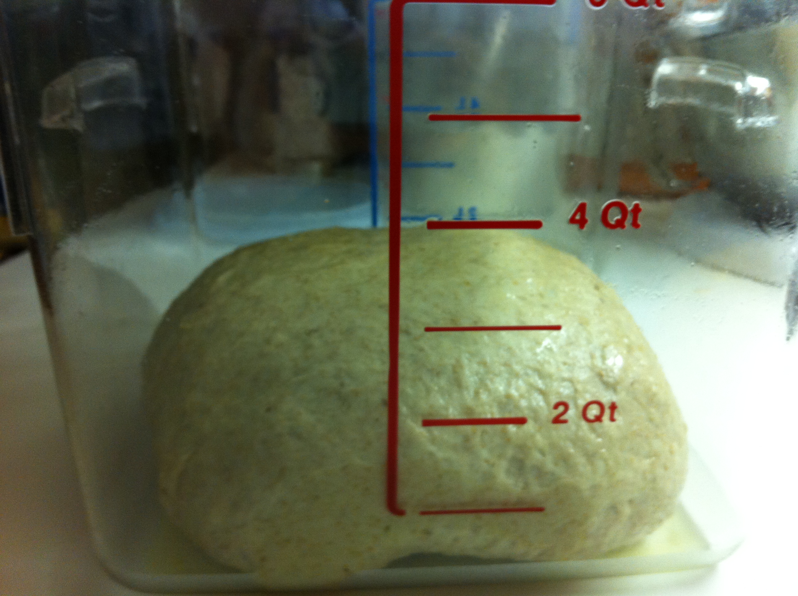When I put this dough in my usual 4 quart rising bucket, it was already at the half way mark. I wasn’t comfortable with that so I cleaned out the 6 quart rising bucket. Since this dough tripled in bulk, I think that was the right choice.