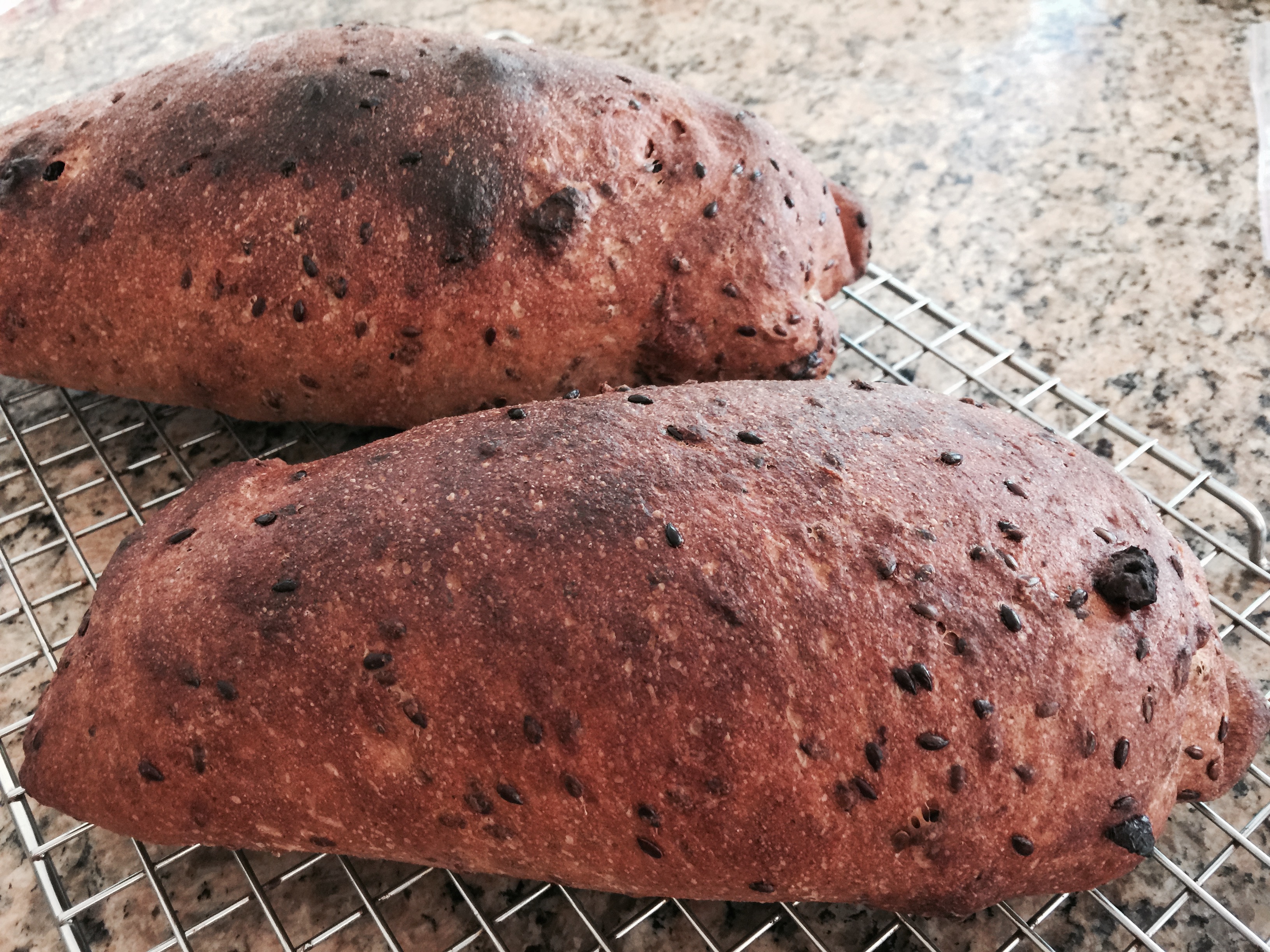 Flaxseed and Plum Ciabatti-Style Loaves