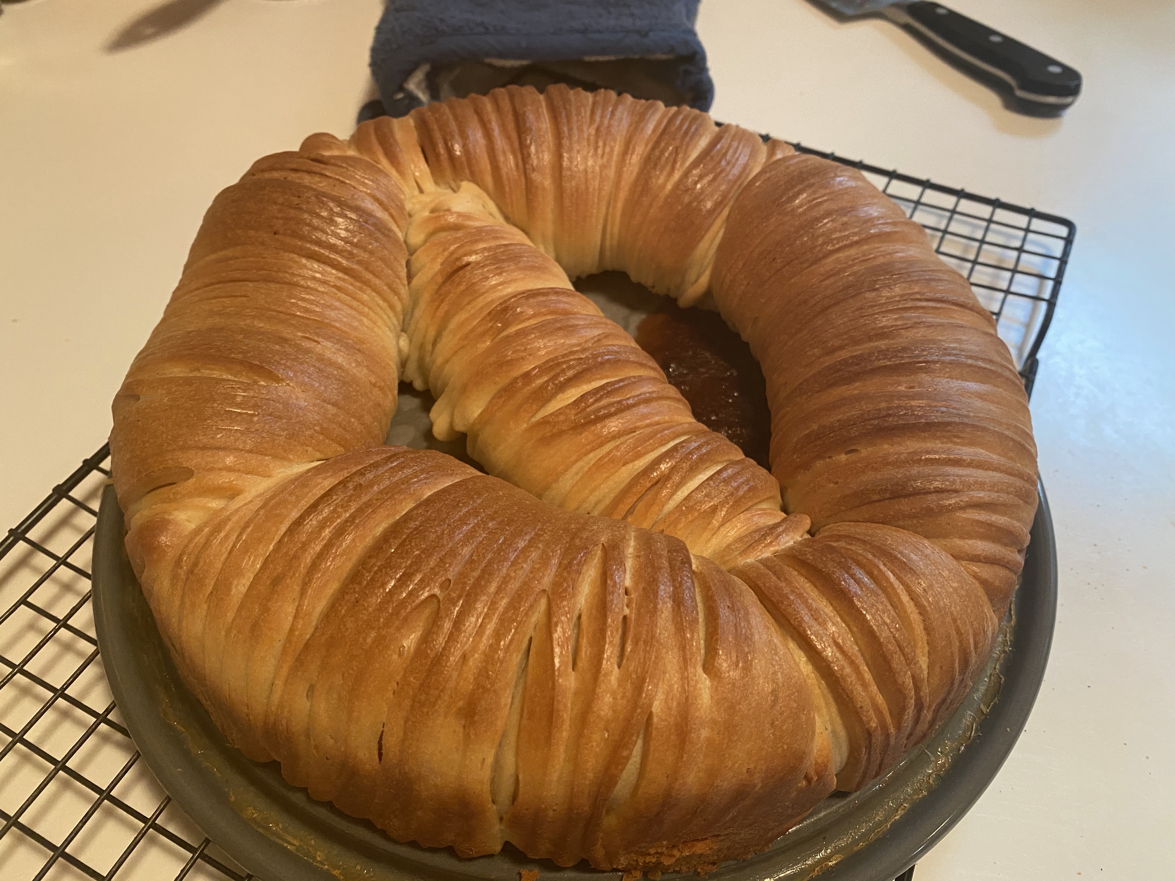 The magic of three basic ingredients always blows my mind. With this bread, it is a technique and shaping that bring it into the realm of the GLORIOUS. Technique is cooking the flour into a paste, the tangzhong, and adding that to the dough. Shaping adds the final magic. I’m astounded by breads that look spectacular and difficult…then turn out to me relatively simple to execute, and this definitely fits in that category.