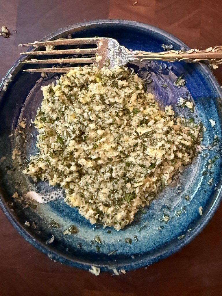 **Combine your flavoring choice in a small bowl. Add enough olive oil to create a pesto-like slurry.