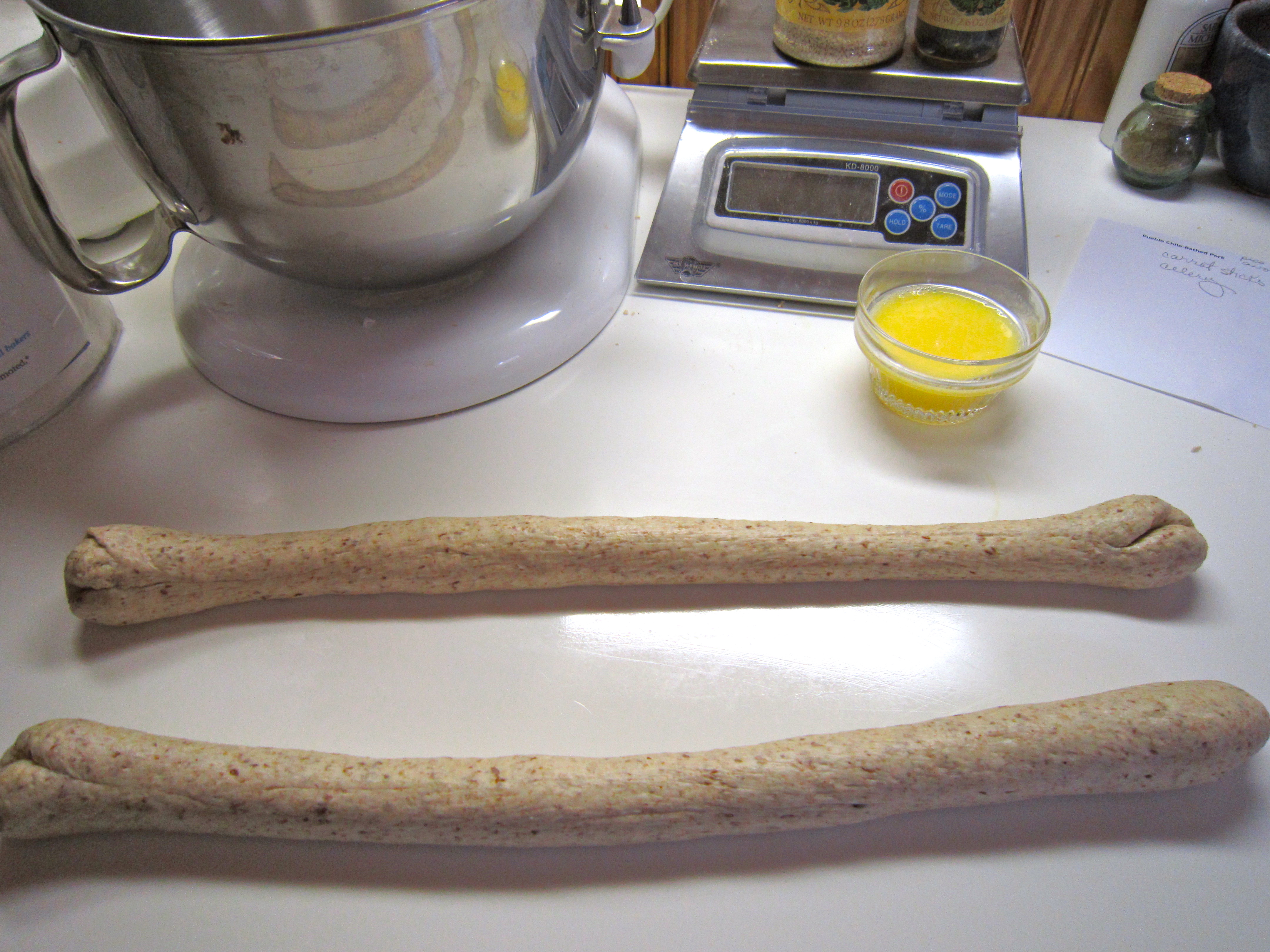 Mix the above together and then begin adding in the sprouted whole wheat until the dough is to thick to stir with the wooden spoon.