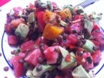 The roasted bell peppers: I oiled the inside of the slow cooker and placed the seeded peppers cut into 6 sections into the slow cooker on high for about 8 hours. Once cooled, the skins released easily.