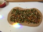 5. Proceed as you will with any other rolls you make; roll dough into a large rectangle on a floured surface. My first batch were thicker than the second day with colder dough. I liked both.
